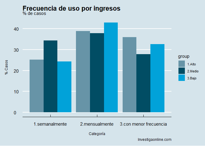 Los niveles de ingresos sí determinan diferencias entre los individuos con ingresos altos y bajos en los niveles de frecuencia bajo y alto respectivamente.