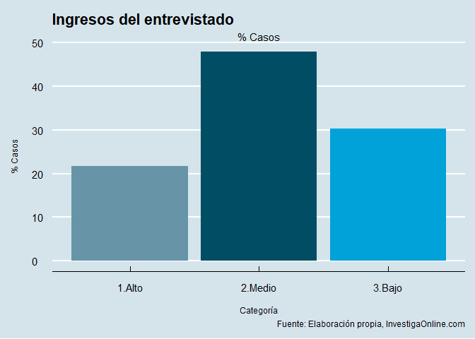 Distribución esperada, quizá con un ligero sesgo hacia ingresos medios y altos, por el mismo motivo ya aducido anteriormente de acceso a muestra de clientes.