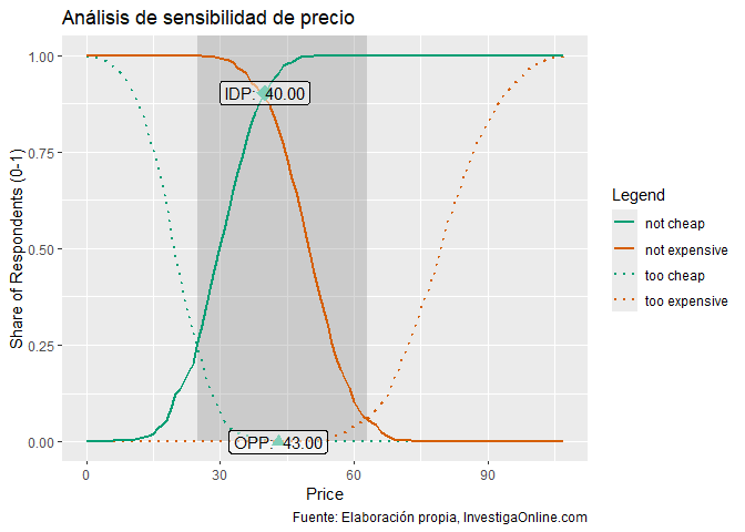 - Análisis de precio óptimo (sensibilidad de precio - Van Westendorp)