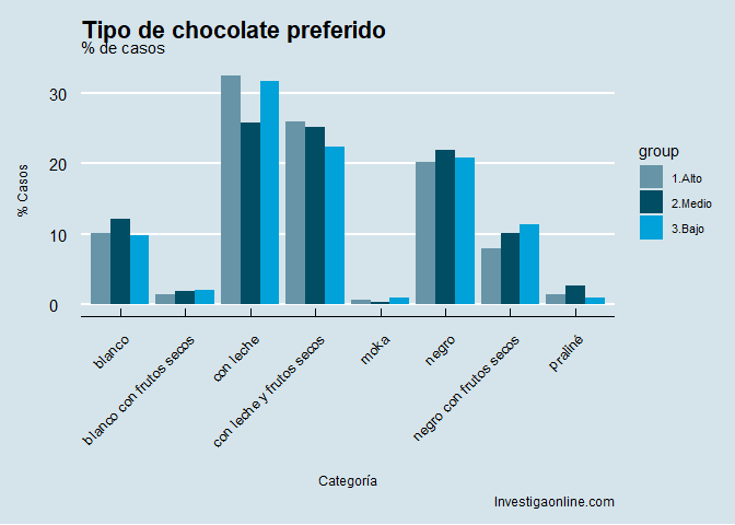 Tipo de chocolate preferido por INGRESOS